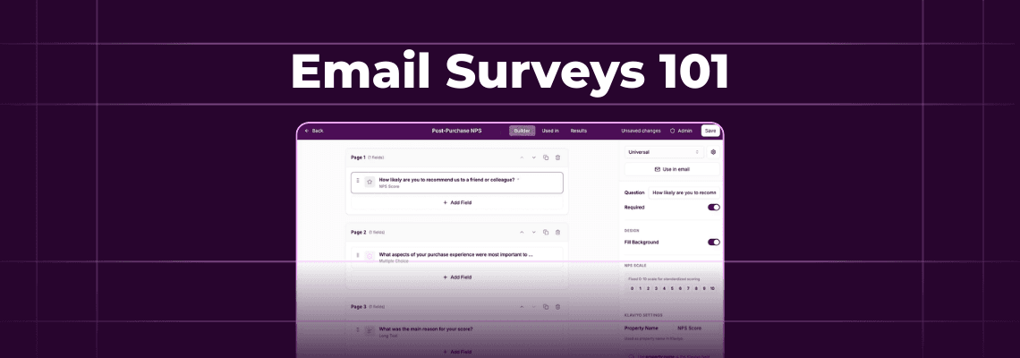 This guide breaks down each approach: how to create email surveys, which delivery method fits your goal, what response rates to expect, and the best practices that move the needle for ecommerce brands.